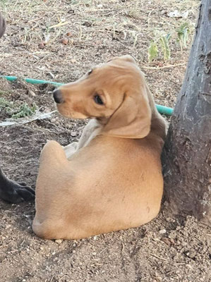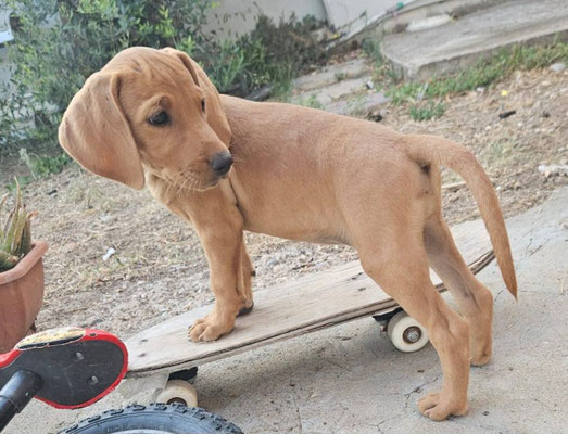 Durch den täglichen Umgang mit der Familie, ihren Kindern und einem Hund, der dort bereits lebt, wird Emma bereits gut sozialisiert und wir vermuten, dass sie ein Jagdhund Mix ist. Wir berichten
