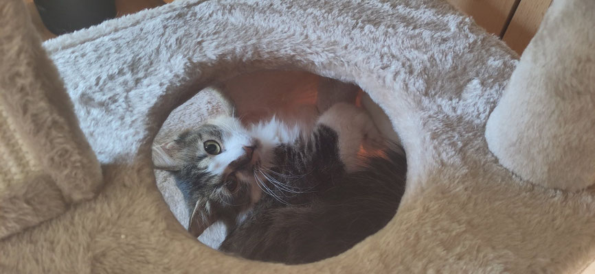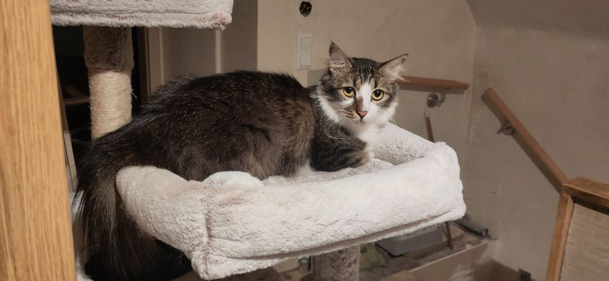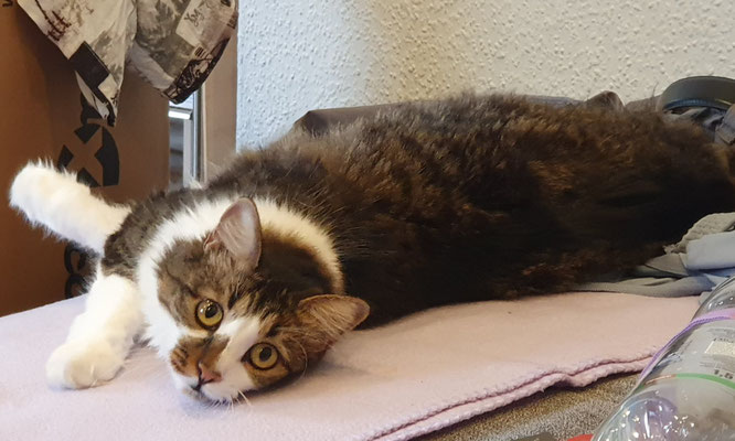 Mit Katzen, die in der Rangordnung oben stehen, scheint sie irgendwie ein Problem zu haben, deswegen suchen wir ein Zuhause, in dem Mia die volle Aufmerksamkeit genießen kann.